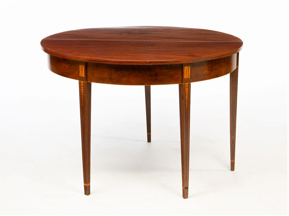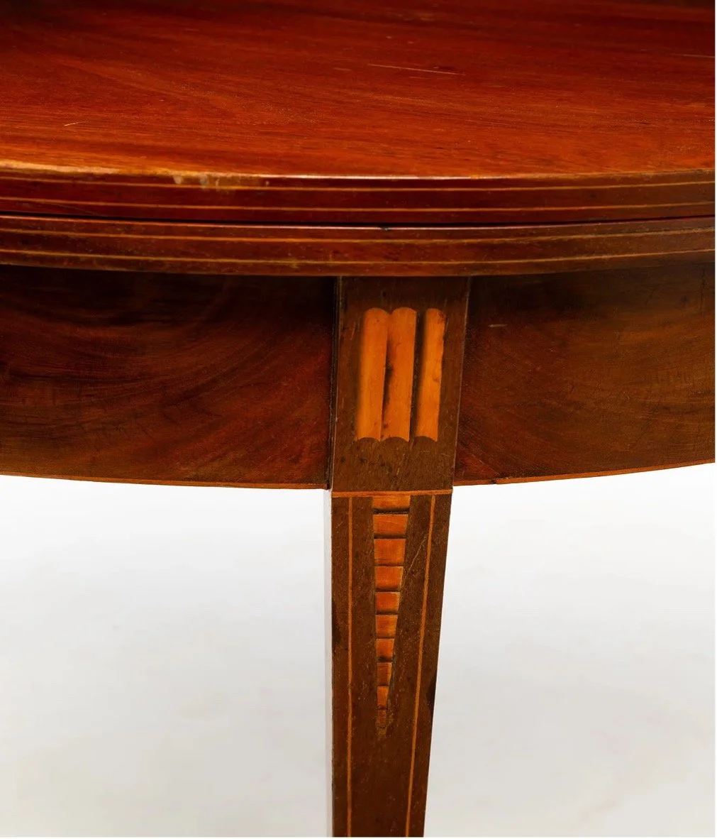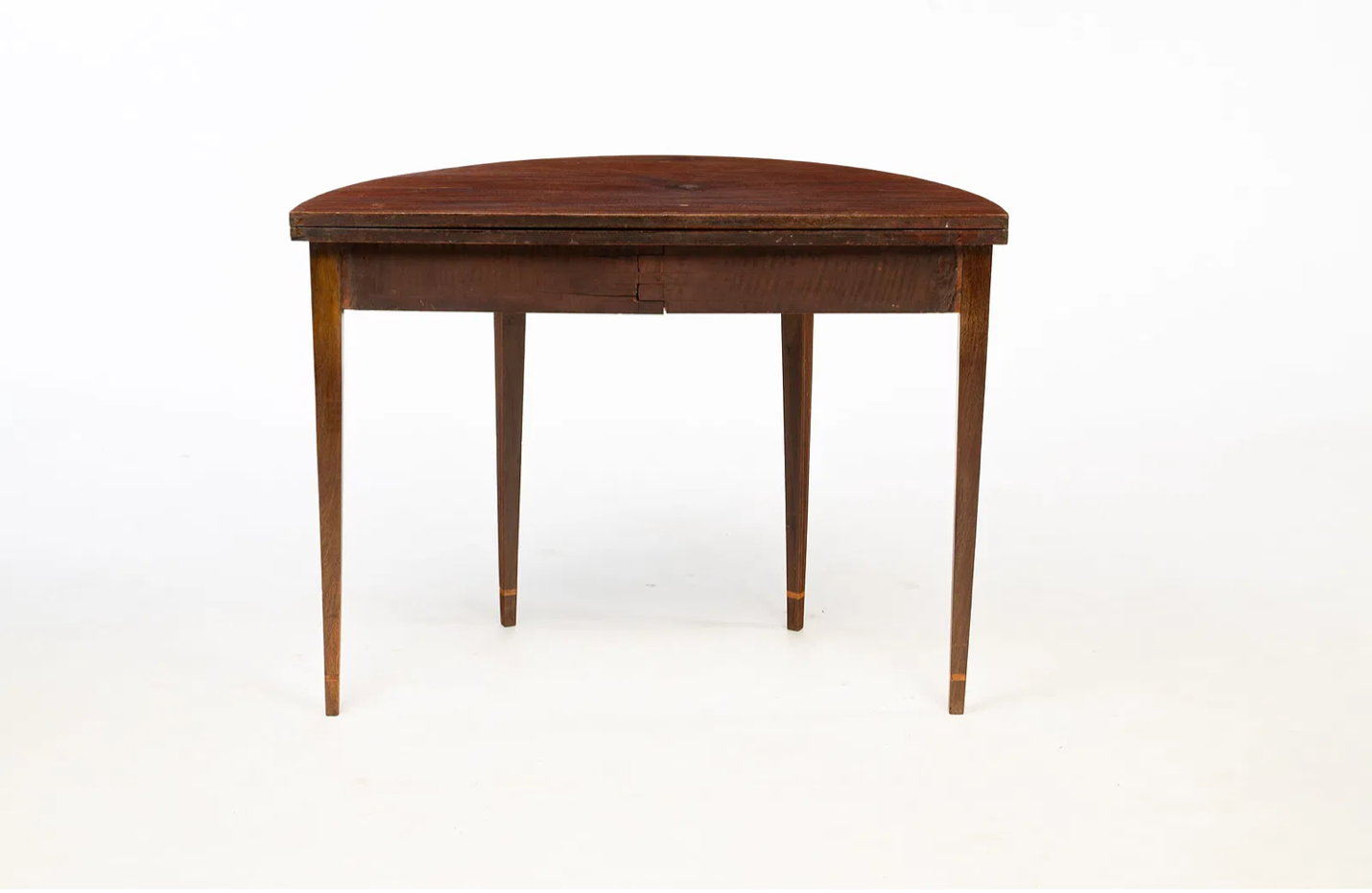 Folding top, tapered legs with descending icicle and line inlay. Older refinish.